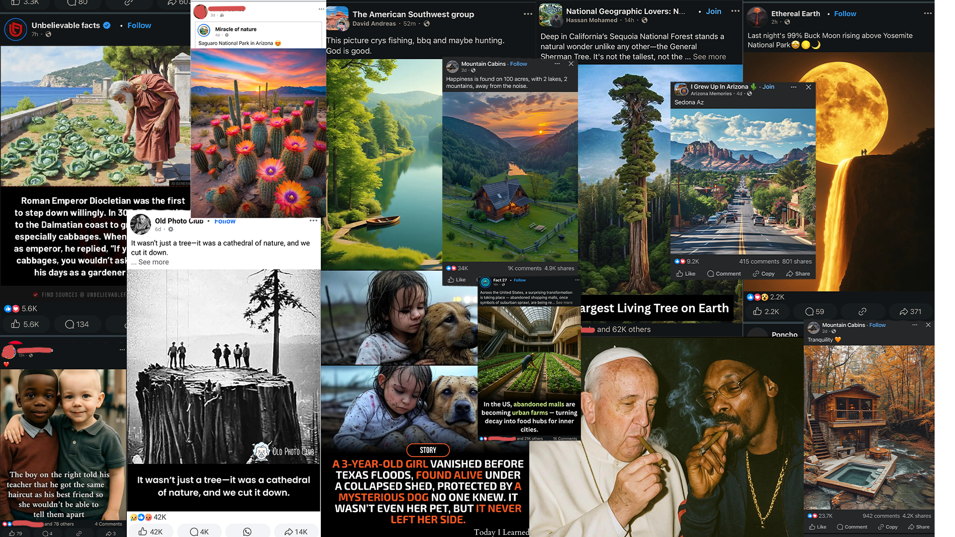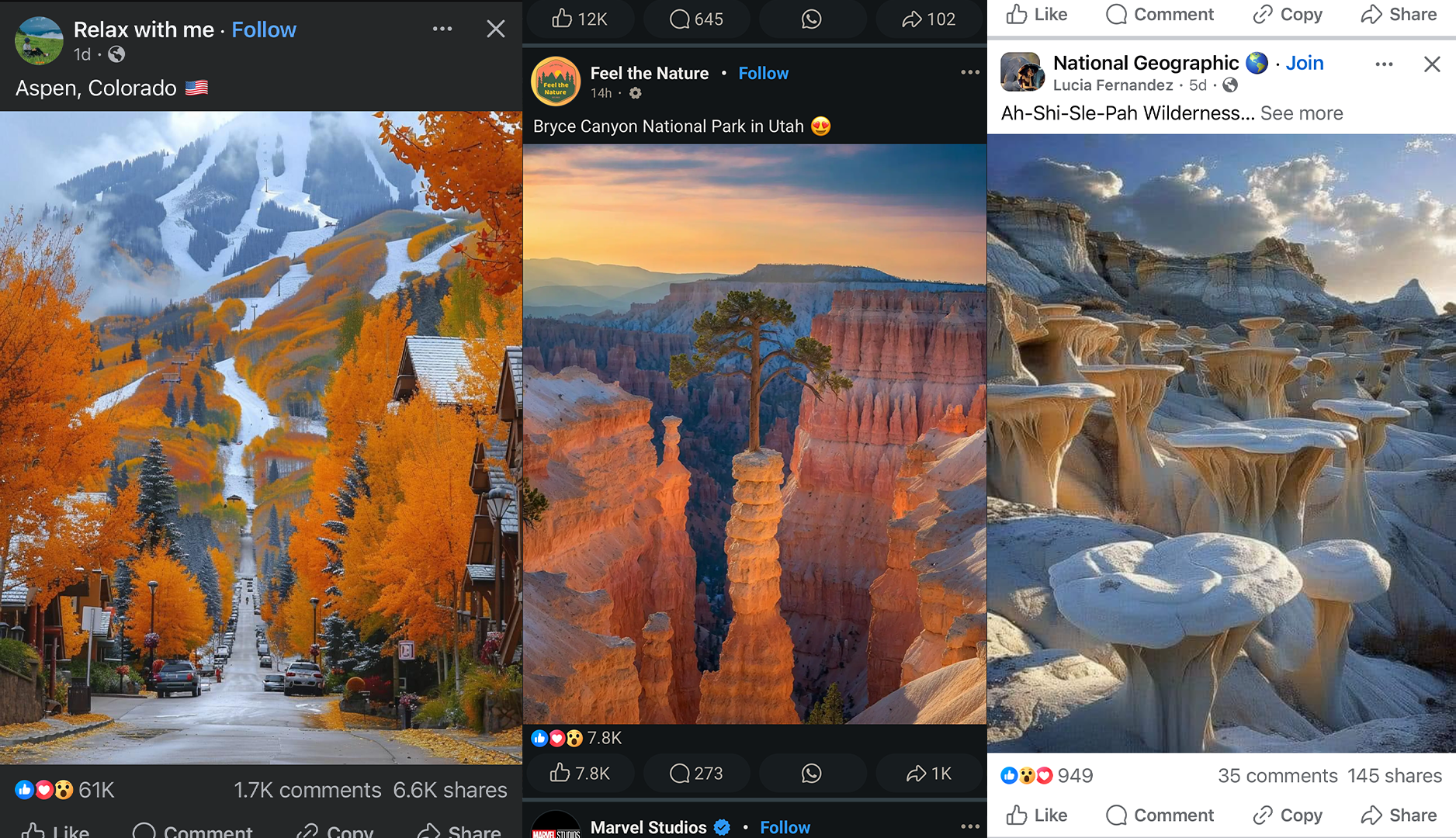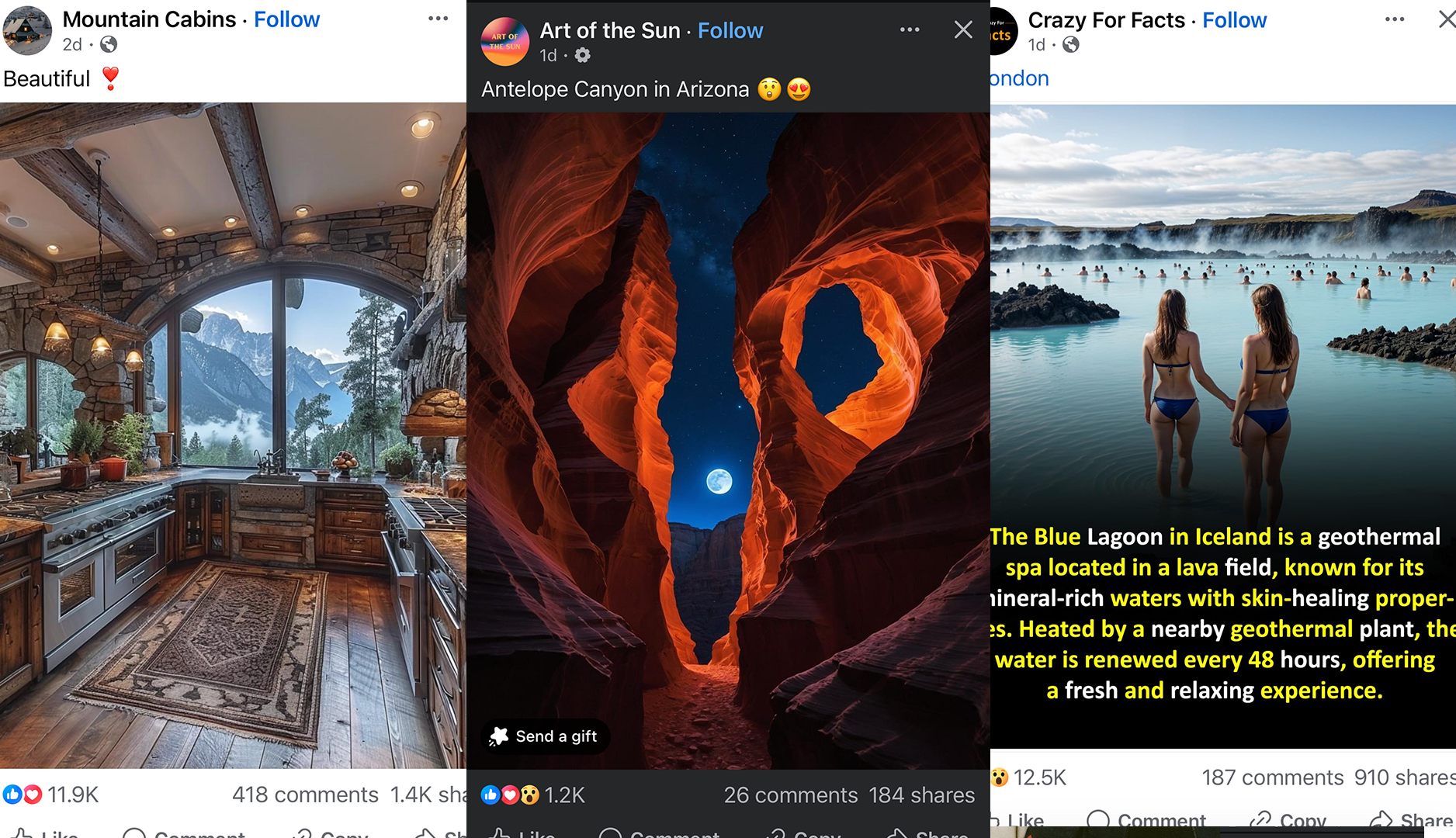 Just a few examples of what I scrolled past within about an hour. ALL are AI generated.